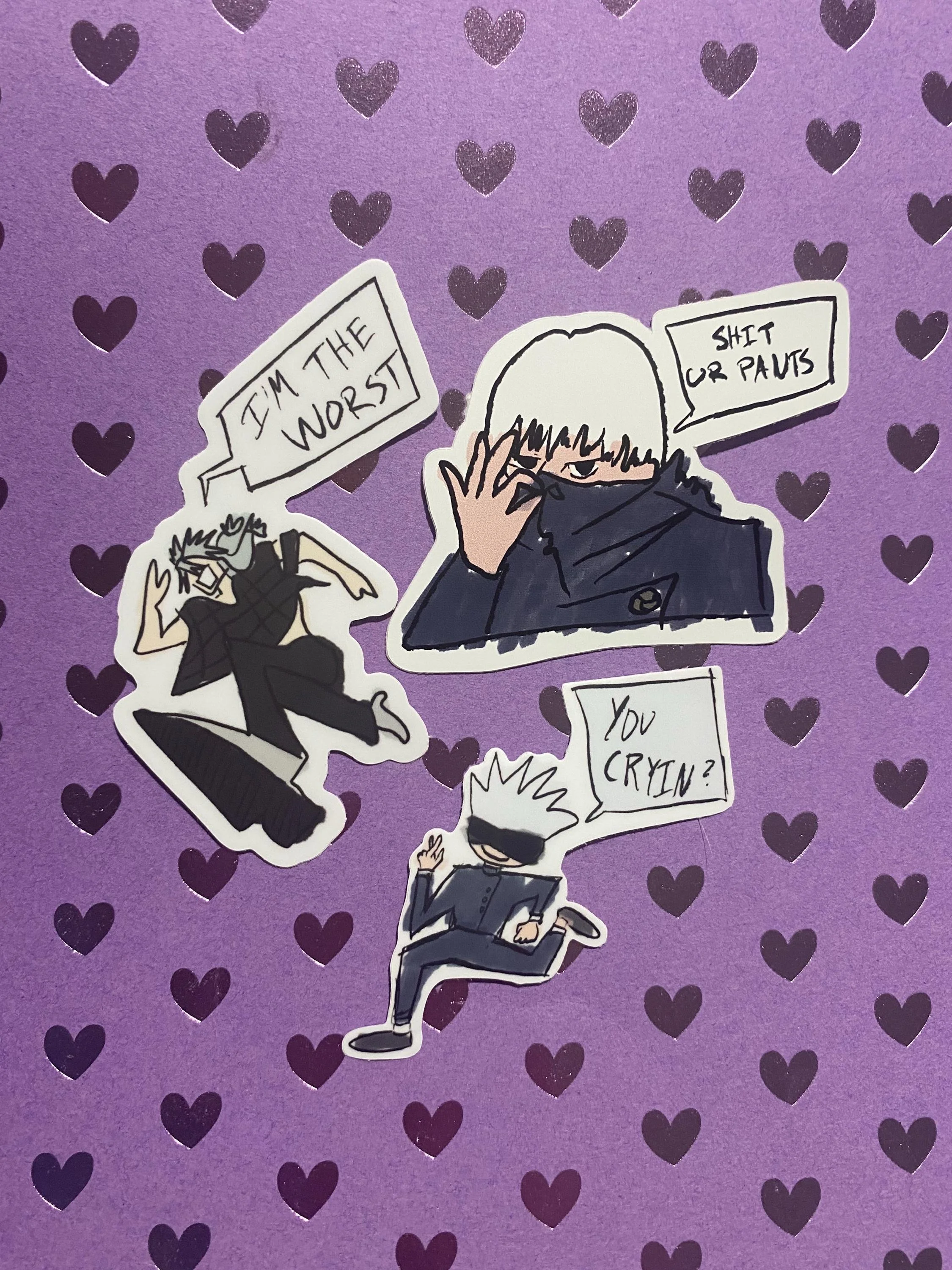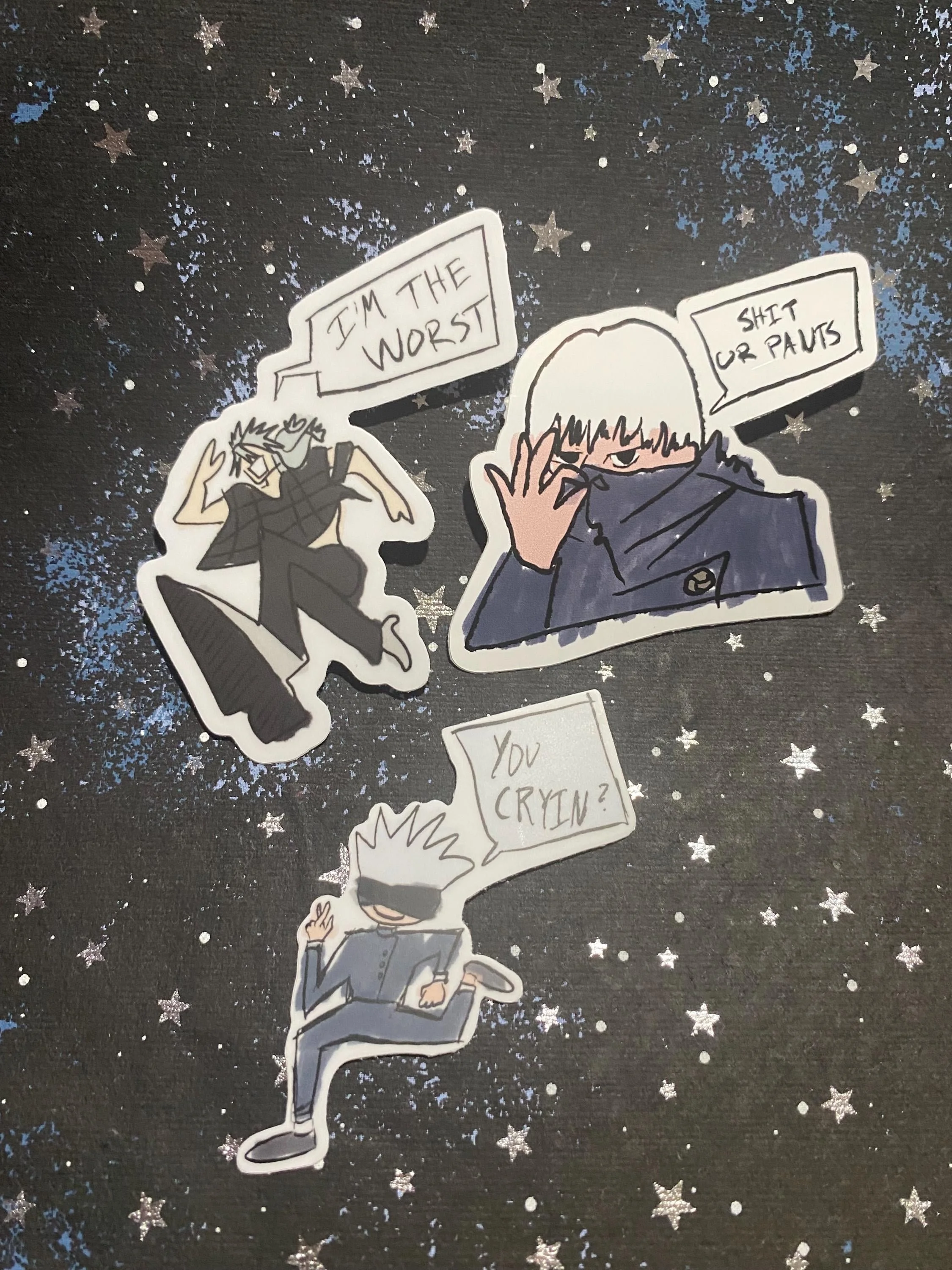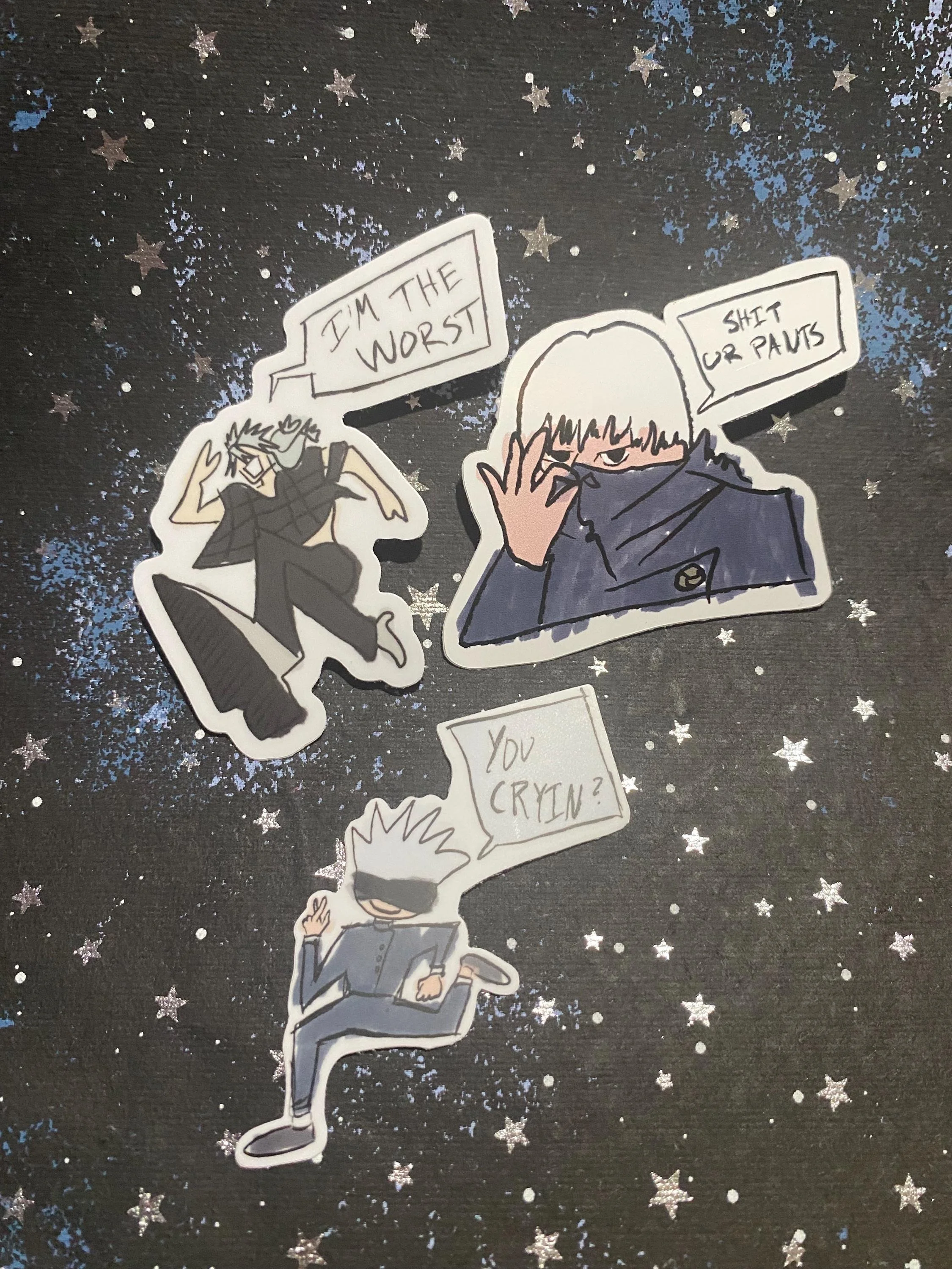 4 jjk poorly drawn sticker pack 3” Sticker Waterproof Vinyl // jujutsu kaisen sticker // u cryin Gojo meme