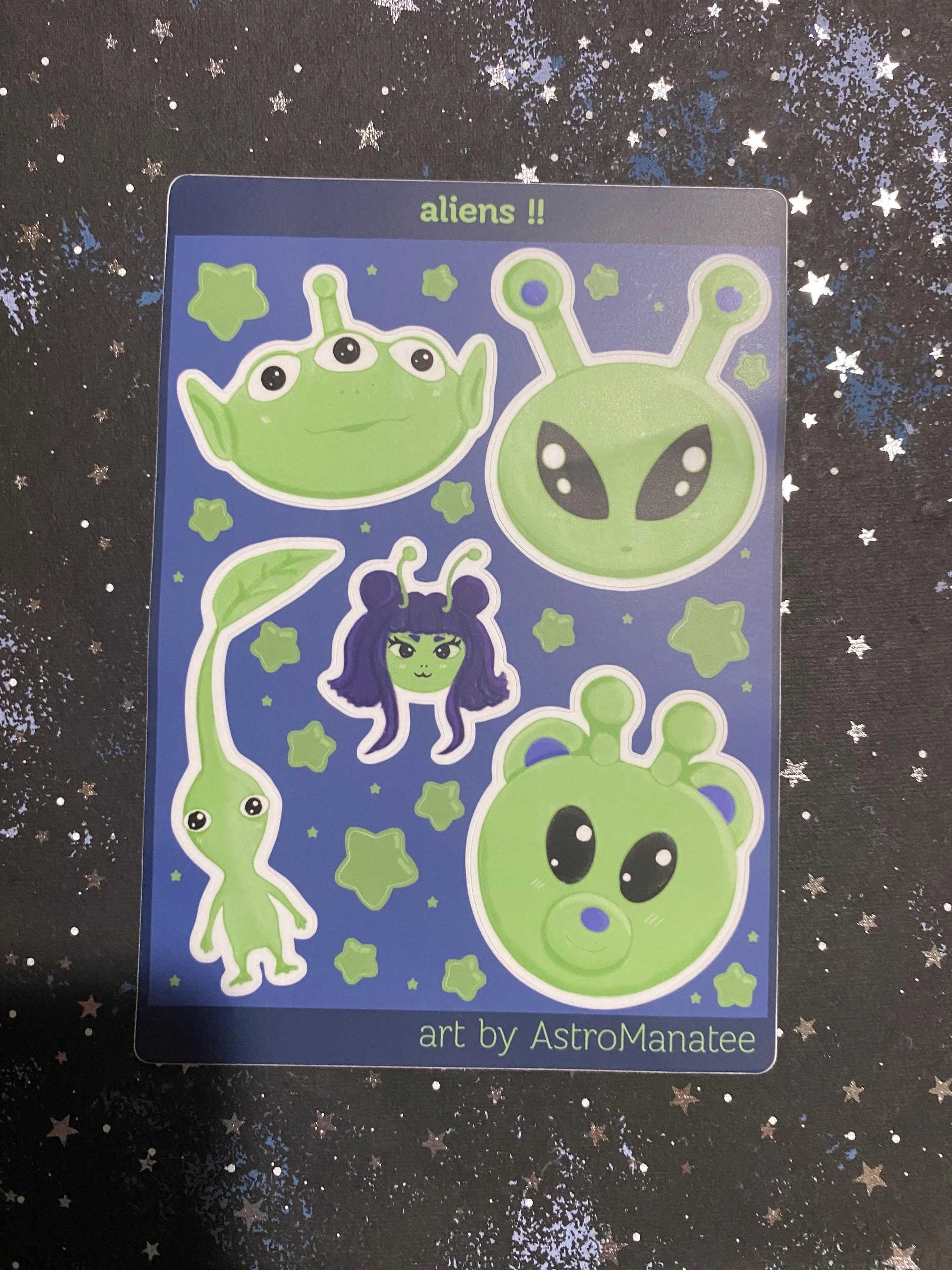 Alien Plush 5x7 Waterpoof Sticker Sheet// alien from ikea // bearlien// bear alien // pikmin// Toy Story alien