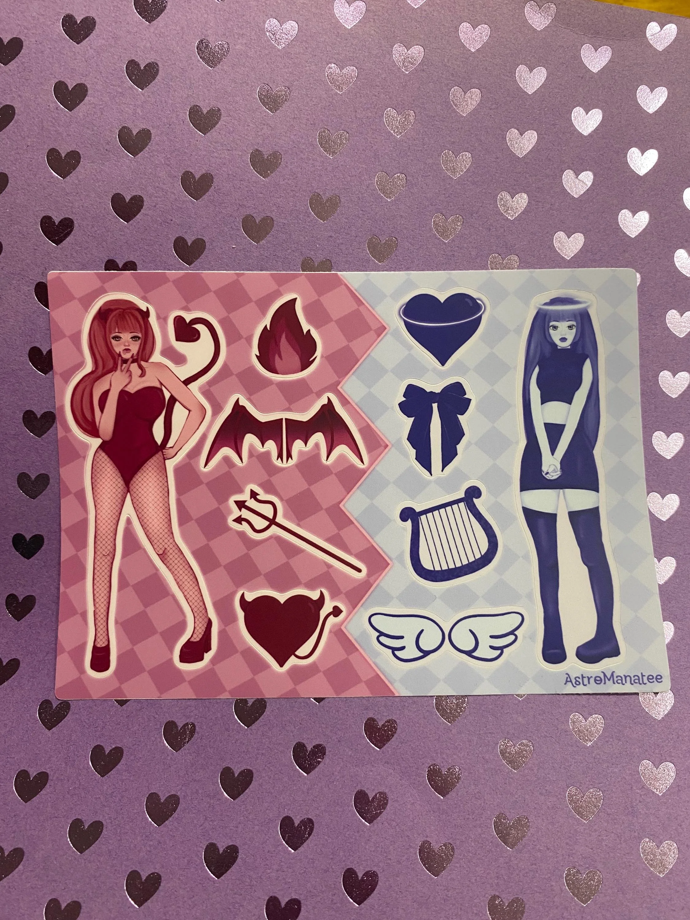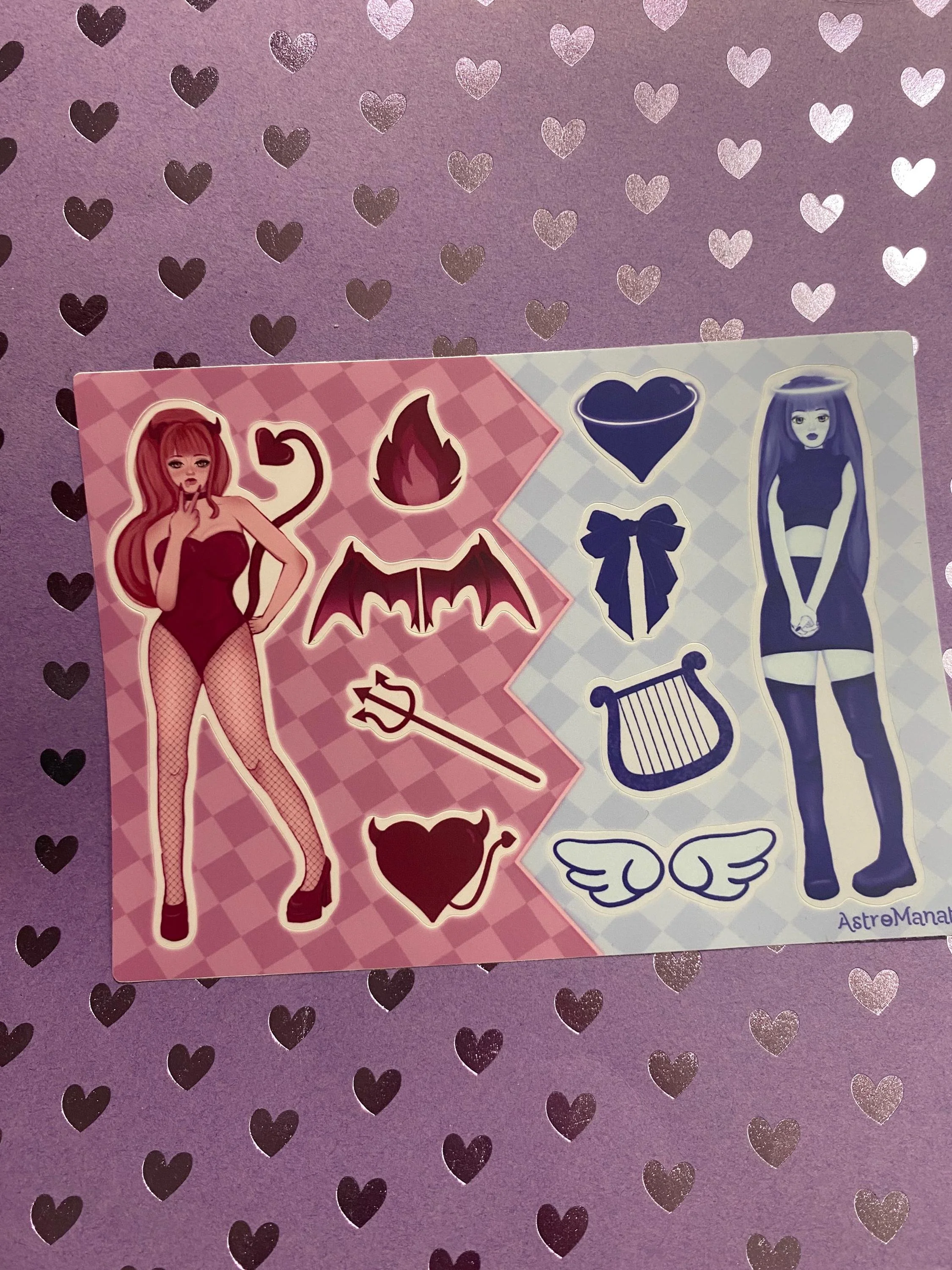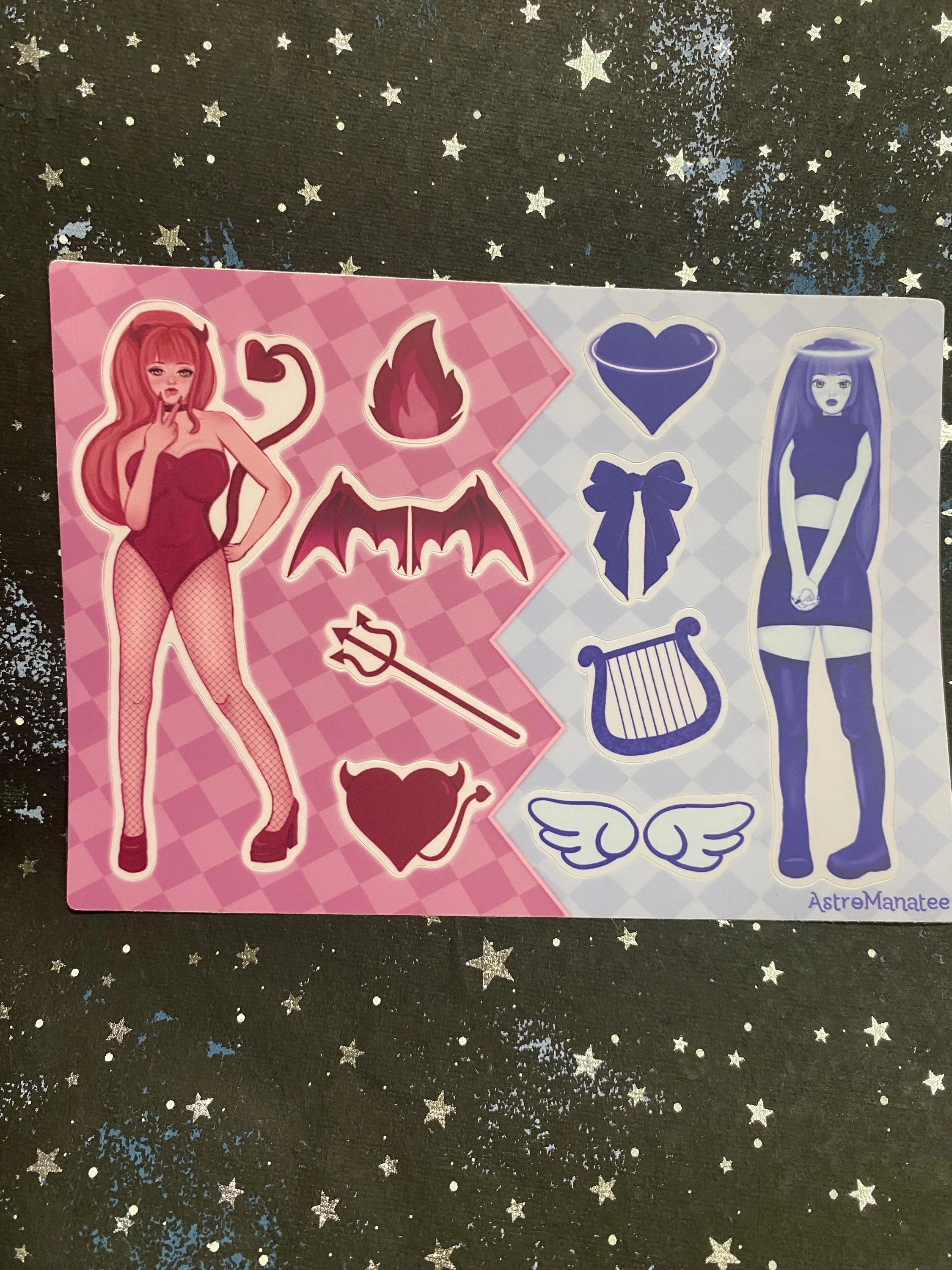 Angel and Demon Girl 5x7 Waterpoof Sticker Sheet//