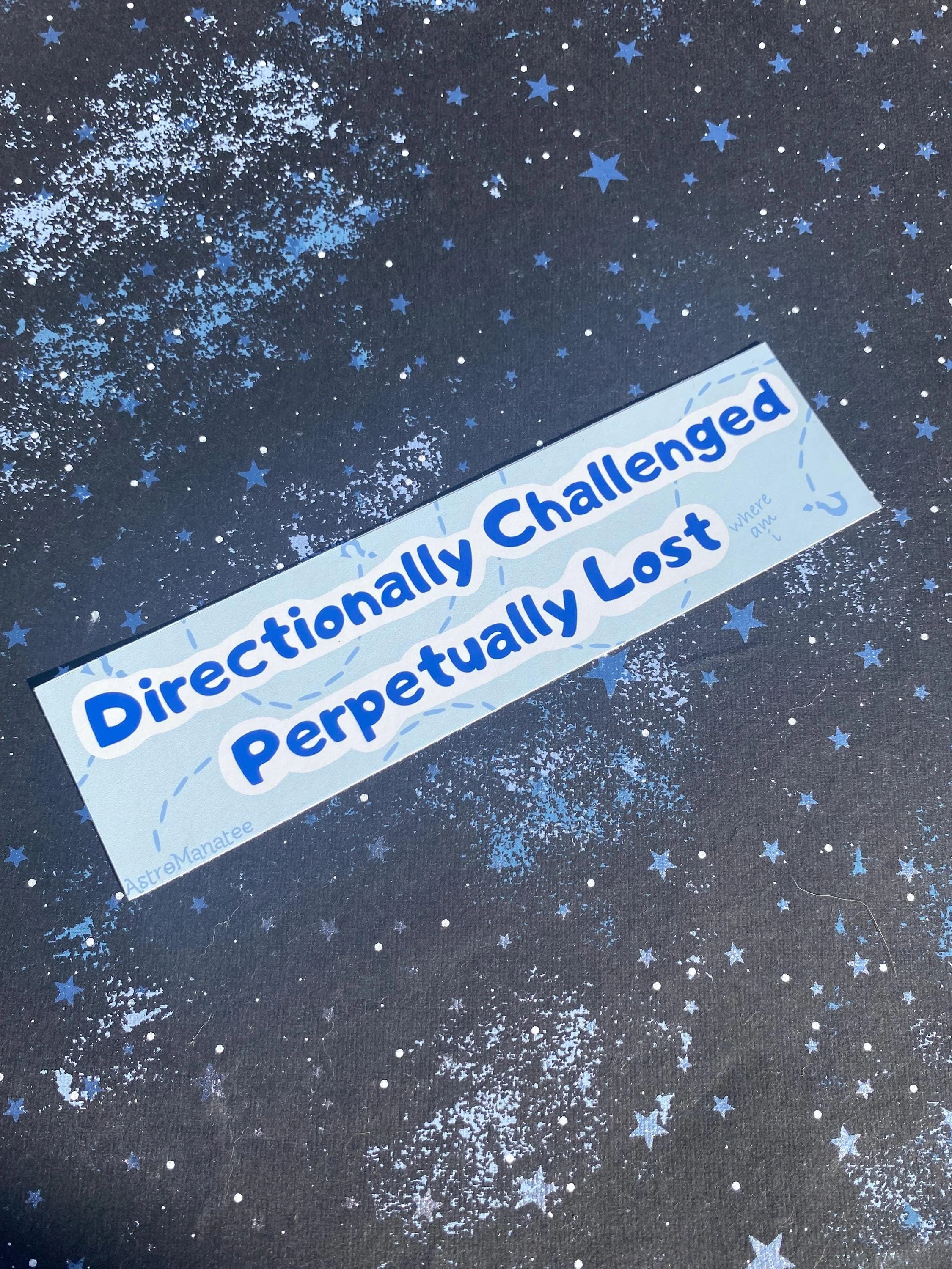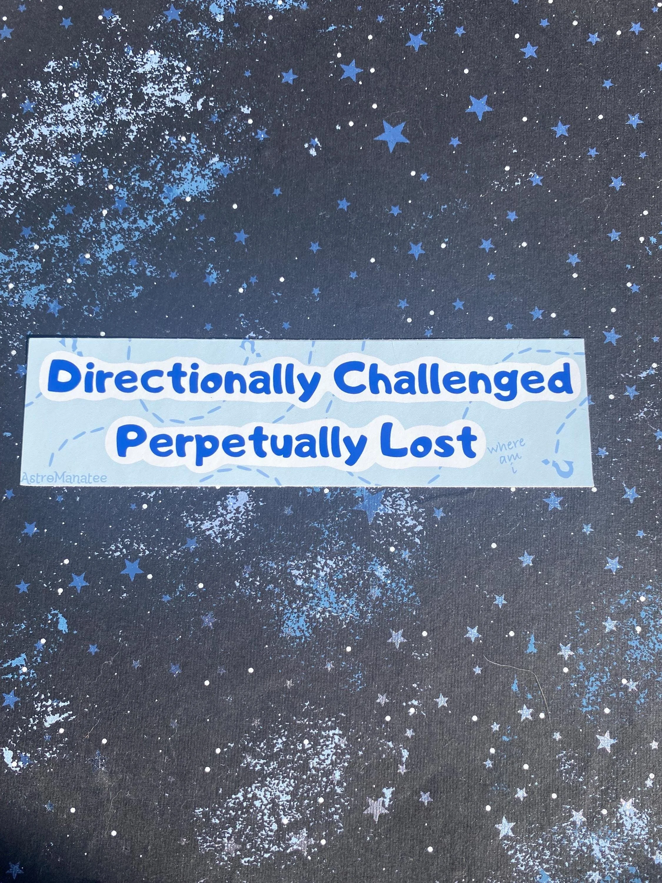 Directionally challenged perpetually lost 7” bumper sticker // funny car bumper sticker