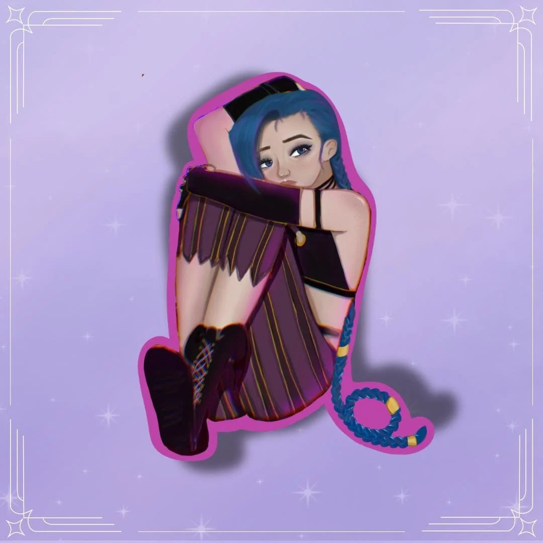 2.5” glossy sticker based on jinx from the Arcane series.