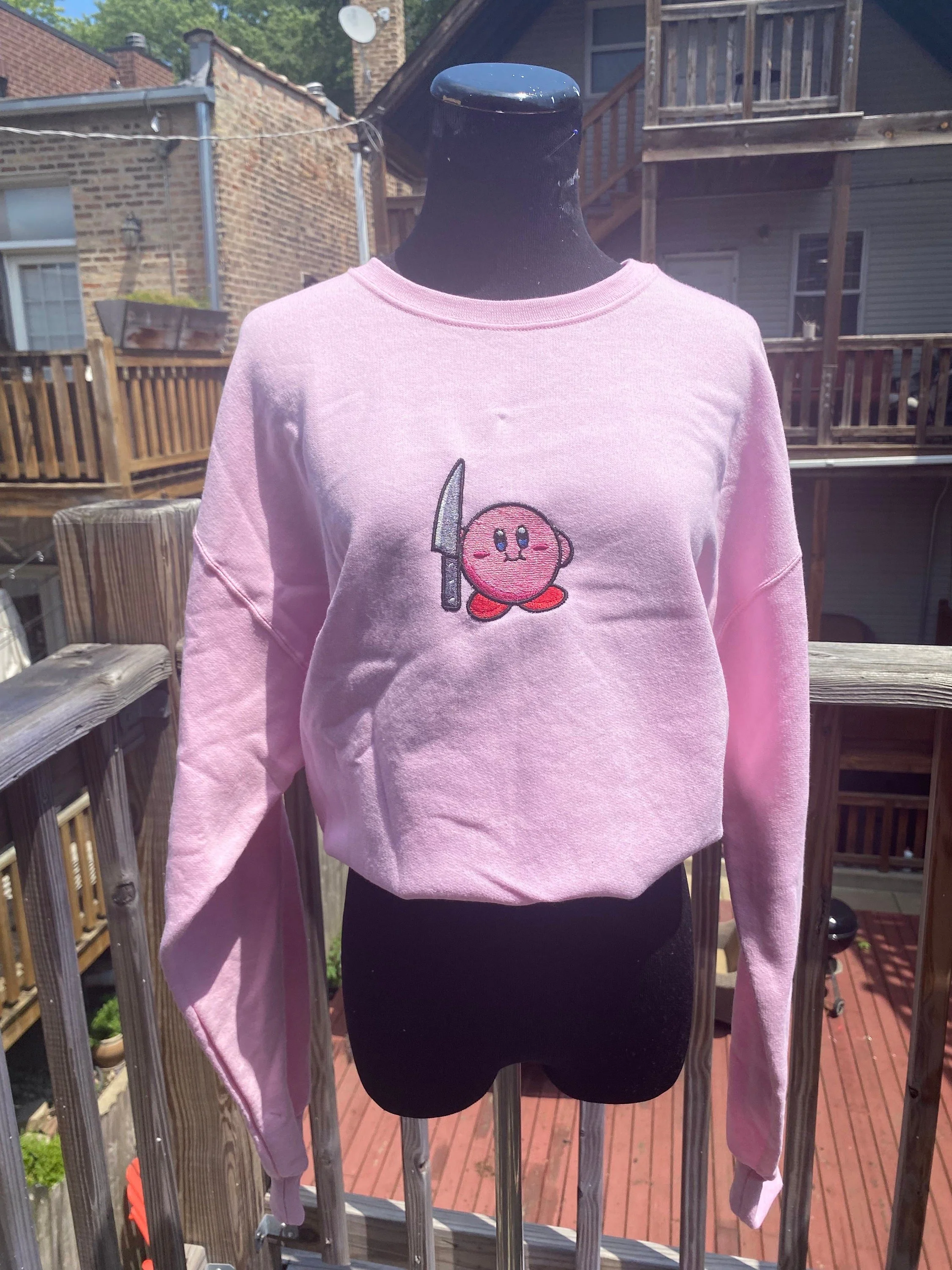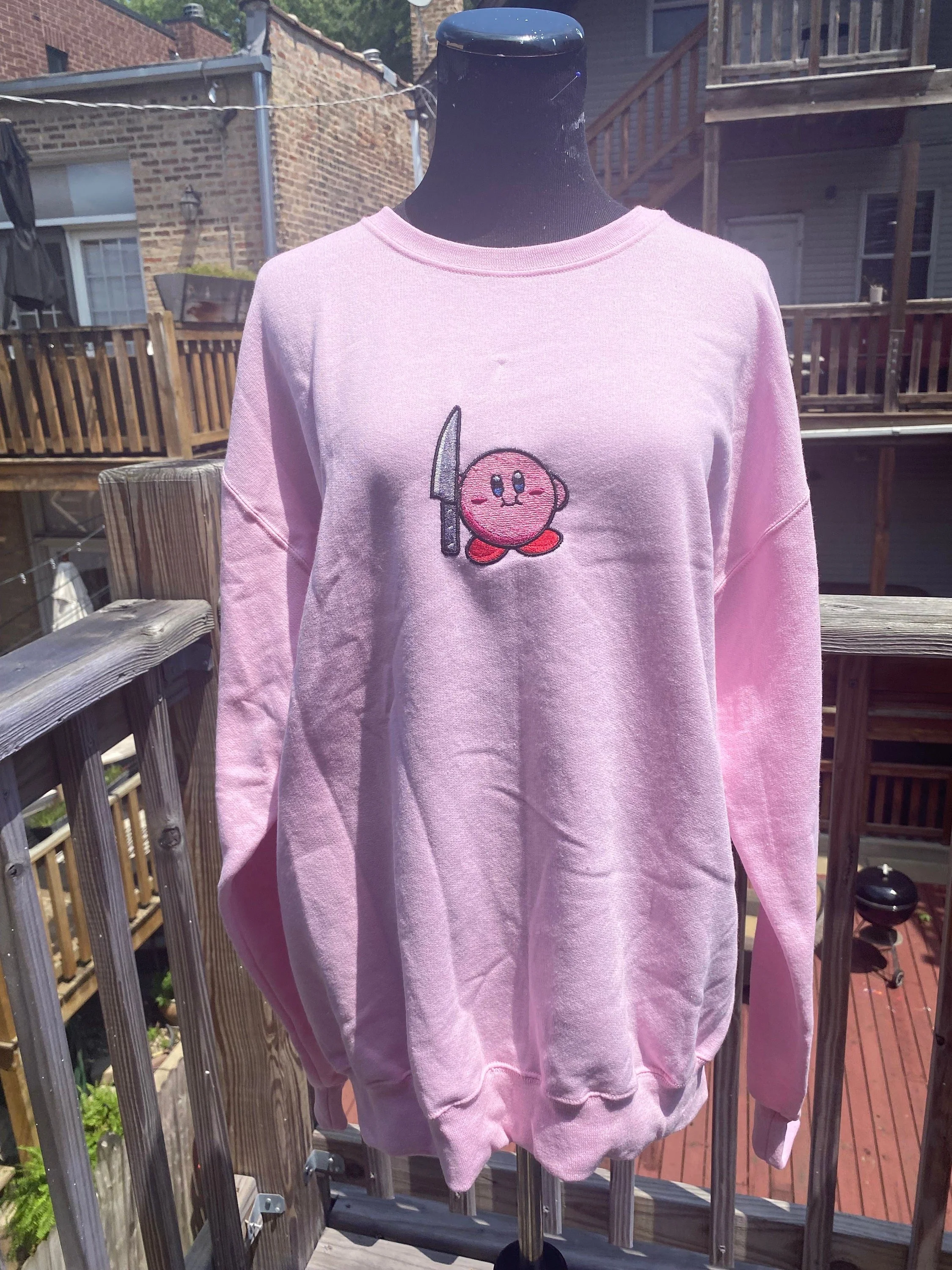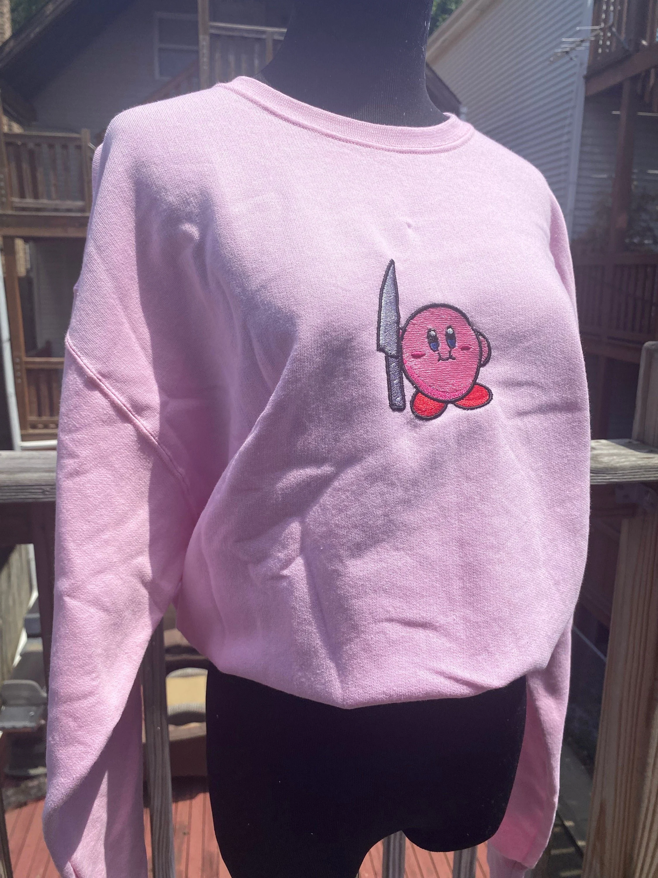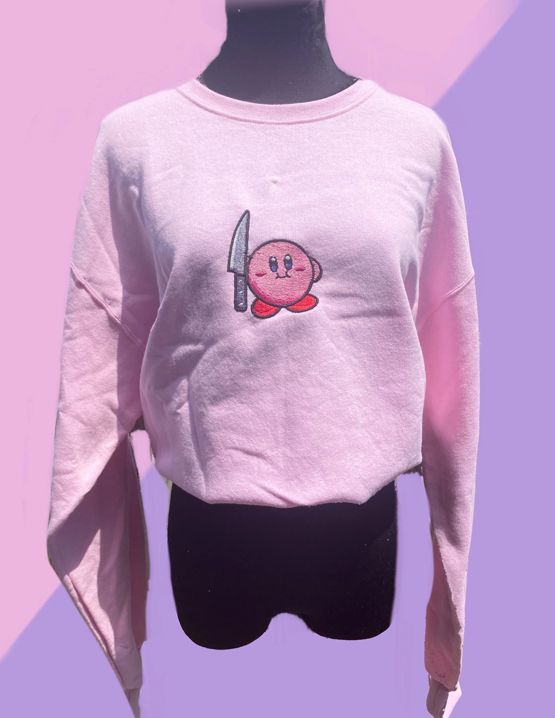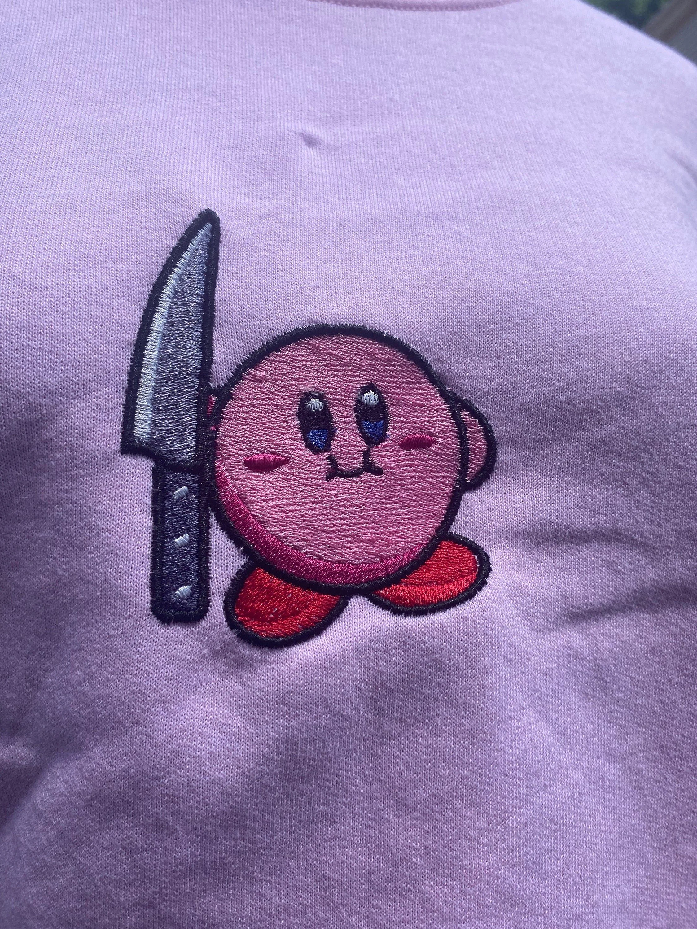 Kirby with a Knife Embroidered Sweater // homemade kirby sweater // kawaii cute sweater
