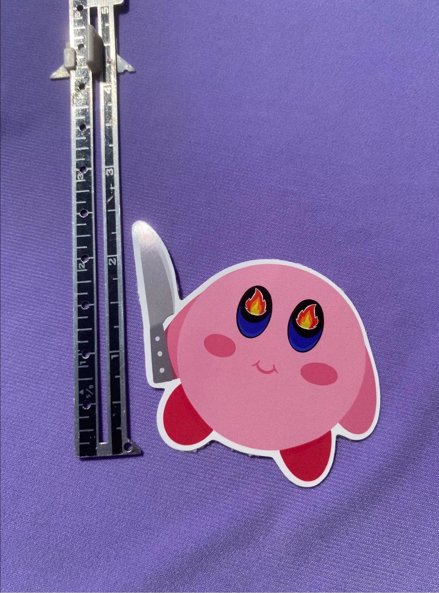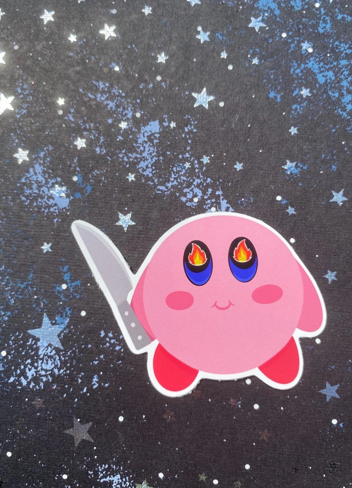 Kirby with knife 2" Glossy Waterproof Sticker //sparkly pink sticker // kirbie in space // Funny Kirbb Sticker // Kirby Meme Sticker //