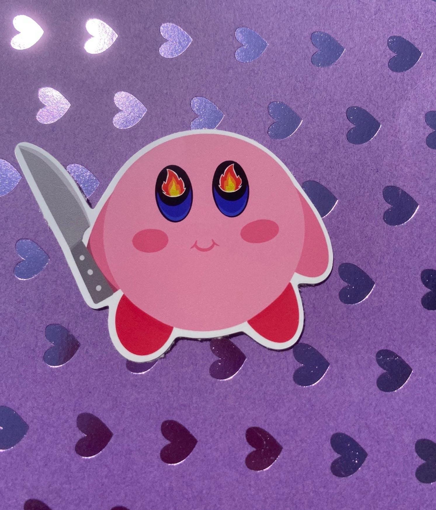 Kirby with knife 2" Glossy Waterproof Sticker //sparkly pink sticker // kirbie in space // Funny Kirbb Sticker // Kirby Meme Sticker //