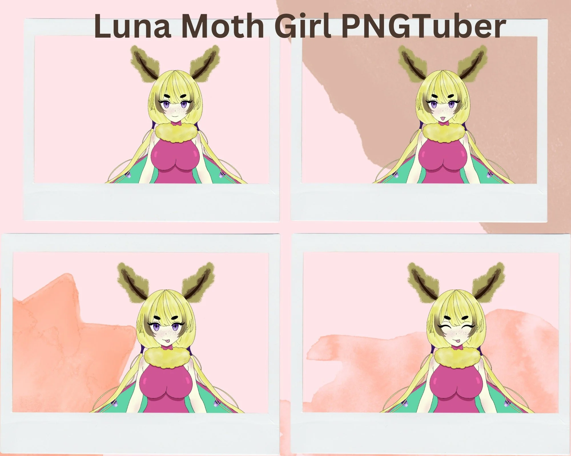 Luna Moth Girl PNGTuber with 10 Faces// PNGtuber for Streamers // Livestreaming, Stream, Twitch, Youtube, OBS, Veadotube