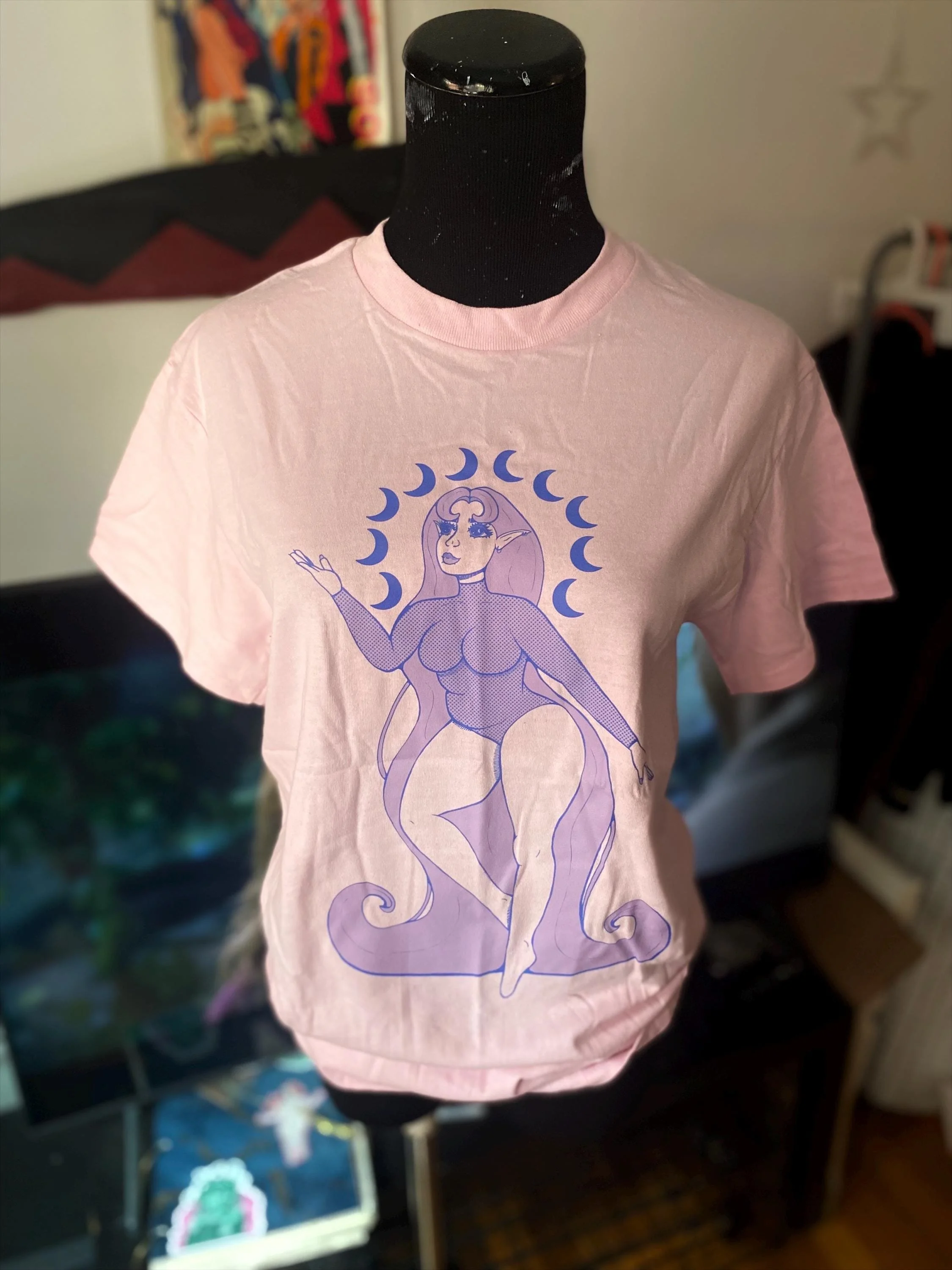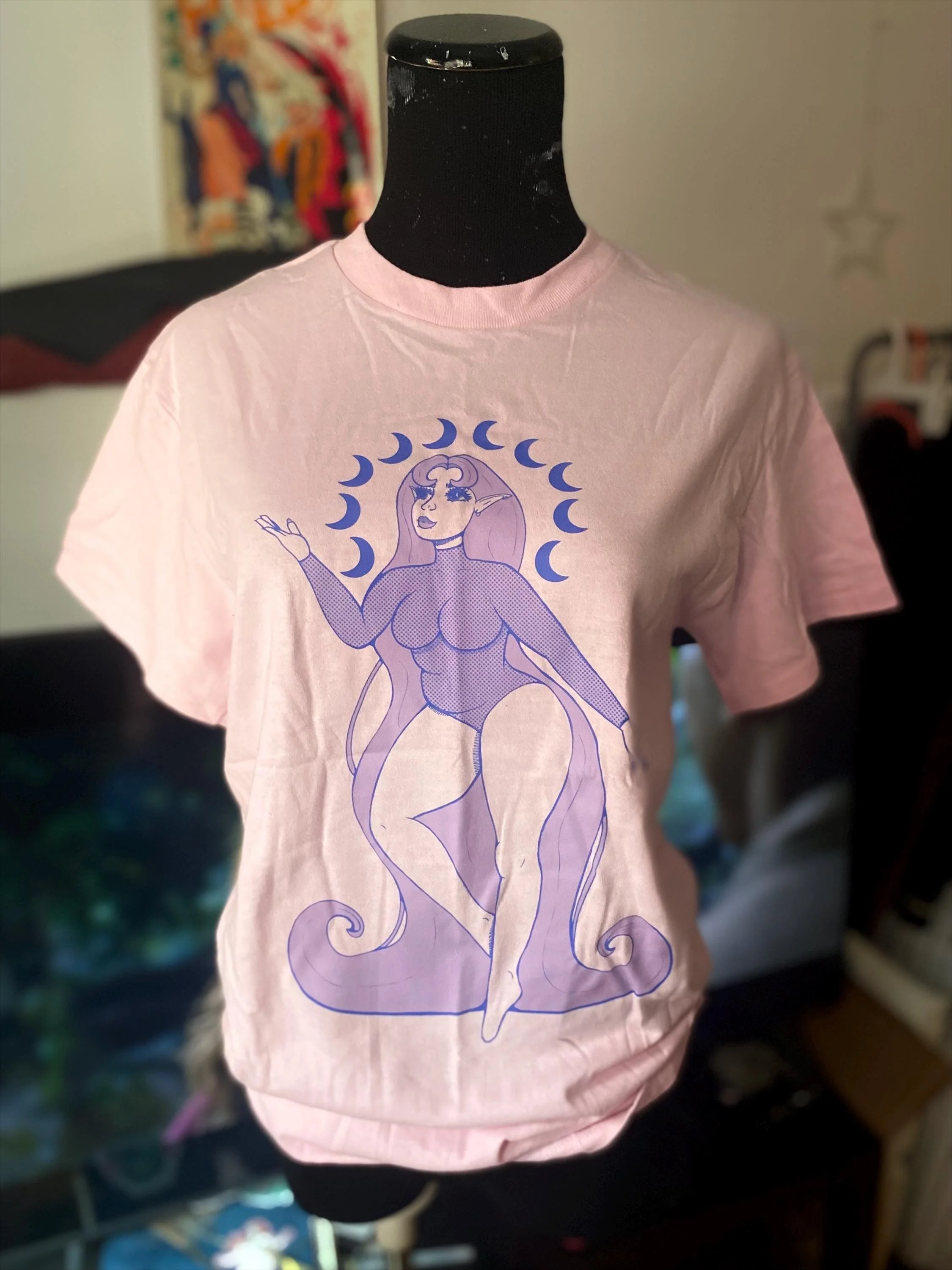 Shop › Lunar Elf Pink Screen Print Unisex T-shirt Image 1 of 4 Image 2 of 4 Image 3 of 4 Image 4 of 4 Lunar Elf Pink Screen Print Unisex T-shirt $35.00 Screen print lunar elf goddess Shirt5.3 oz./yd², 100% heavyweight cottonPre-shrunkClassic fit7/8" ribbed collarTaped neck and shouldersRibbed cuffsDouble-needle sleeves and bottom hemSewn in label Size: 2X 3X L M S XL Add To Cart Added! Screen print lunar elf goddess Shirt5.3 oz./yd², 100% heavyweight cottonPre-shrunkClassic fit7/8" ribbed collarTaped neck and shouldersRibbed cuffsDouble-needle sleeves and bottom hemSewn in label
