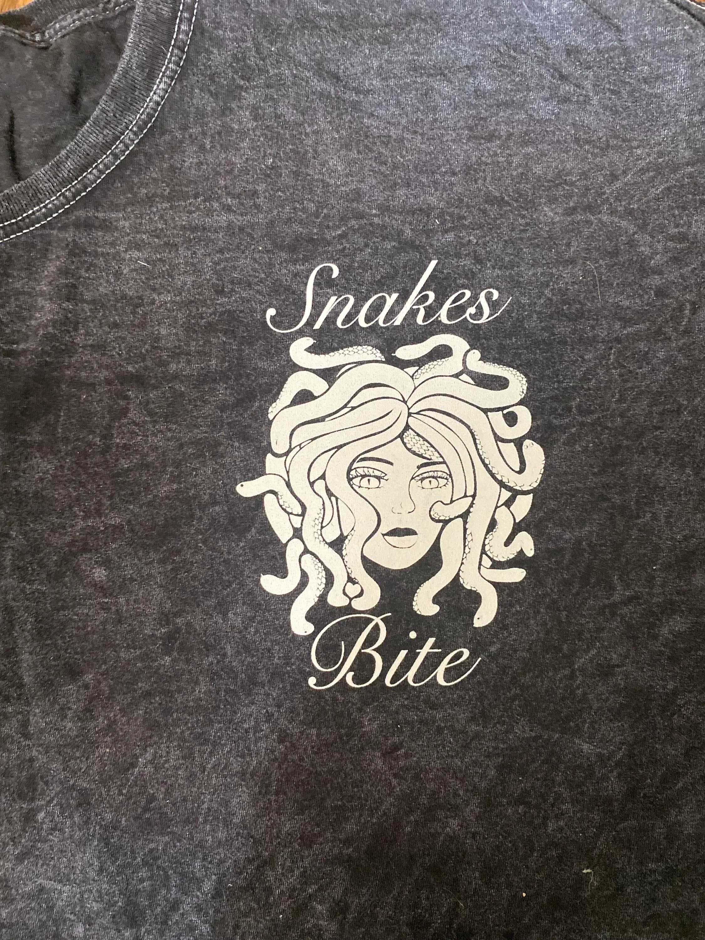 Shop › Snakes Bite Medusa Gorgon Screen Print Unisex T-shirt Image 1 of 7 Image 2 of 7 Image 3 of 7 Image 4 of 7 Image 5 of 7 Image 6 of 7 Image 7 of 7 Snakes Bite Medusa Gorgon Screen Print Unisex T-shirt $45.00 Screen print Medusa Snakes Bite Shirt5.3 oz./yd², 100% heavyweight cottonPre-shrunkClassic fit7/8" ribbed collarTaped neck and shouldersRibbed cuffsDouble-needle sleeves and bottom hemSewn in label Size: 2X 3X L M S XL Add To Cart Added! Screen print Medusa Snakes Bite Shirt5.3 oz./yd², 100% heavyweight cottonPre-shrunkClassic fit7/8" ribbed collarTaped neck and shouldersRibbed cuffsDouble-needle sleeves and bottom hemSewn in label