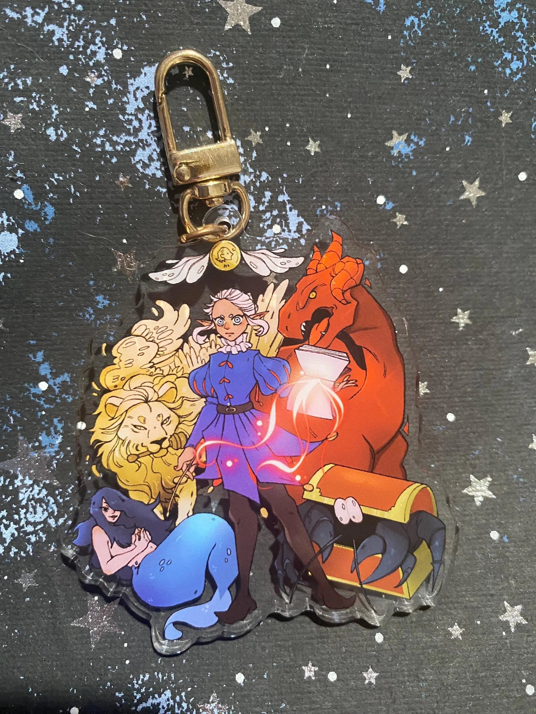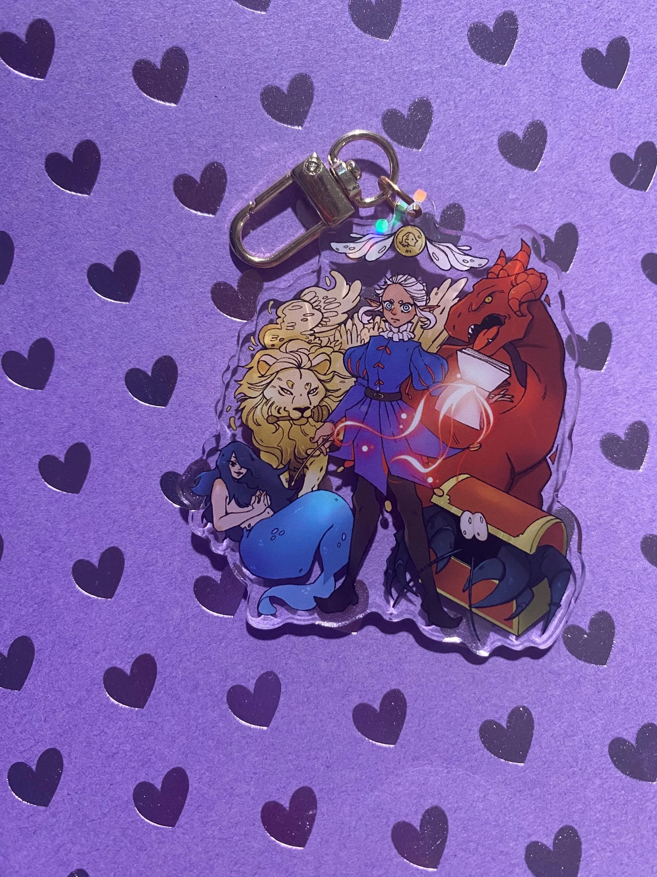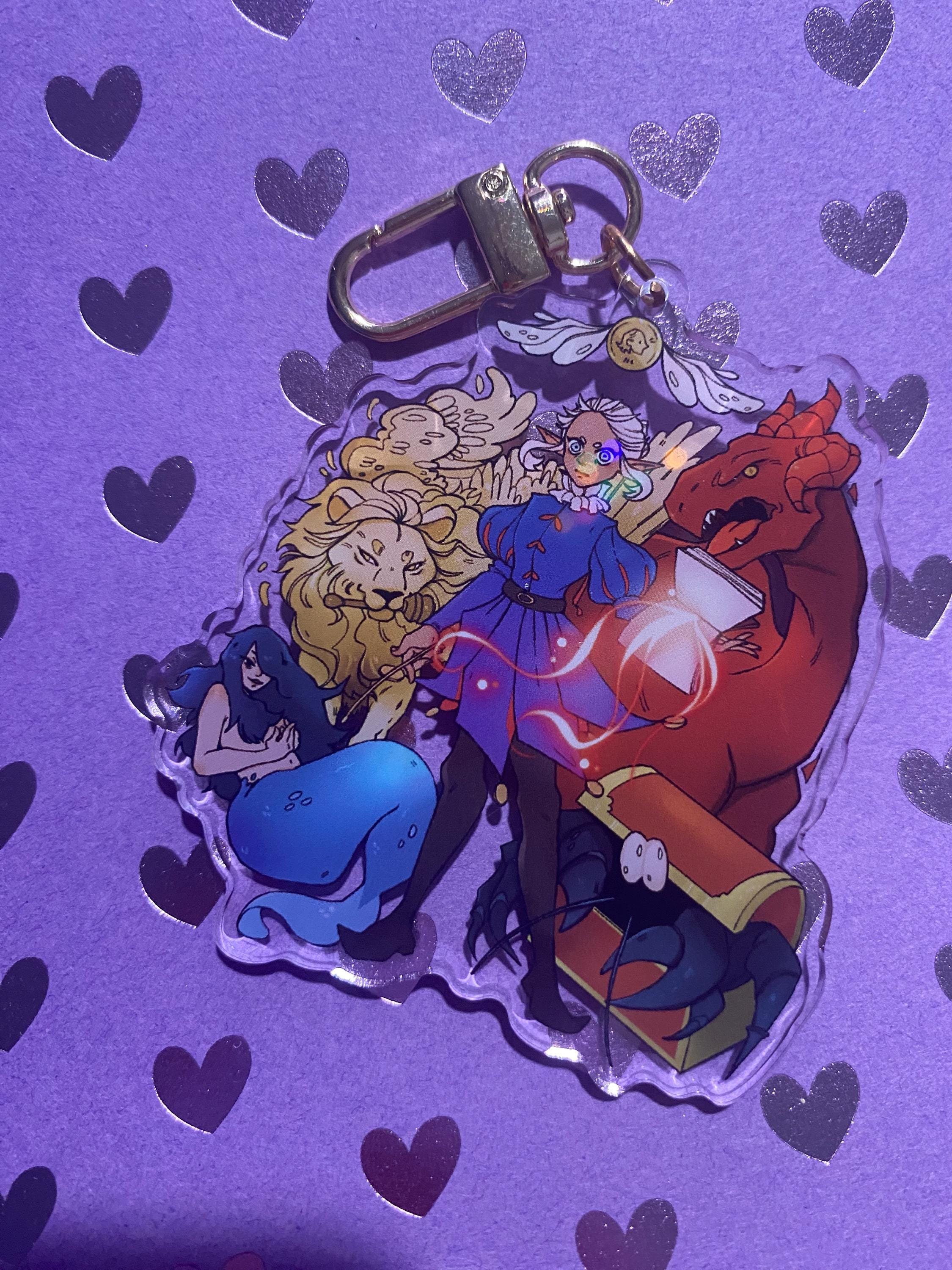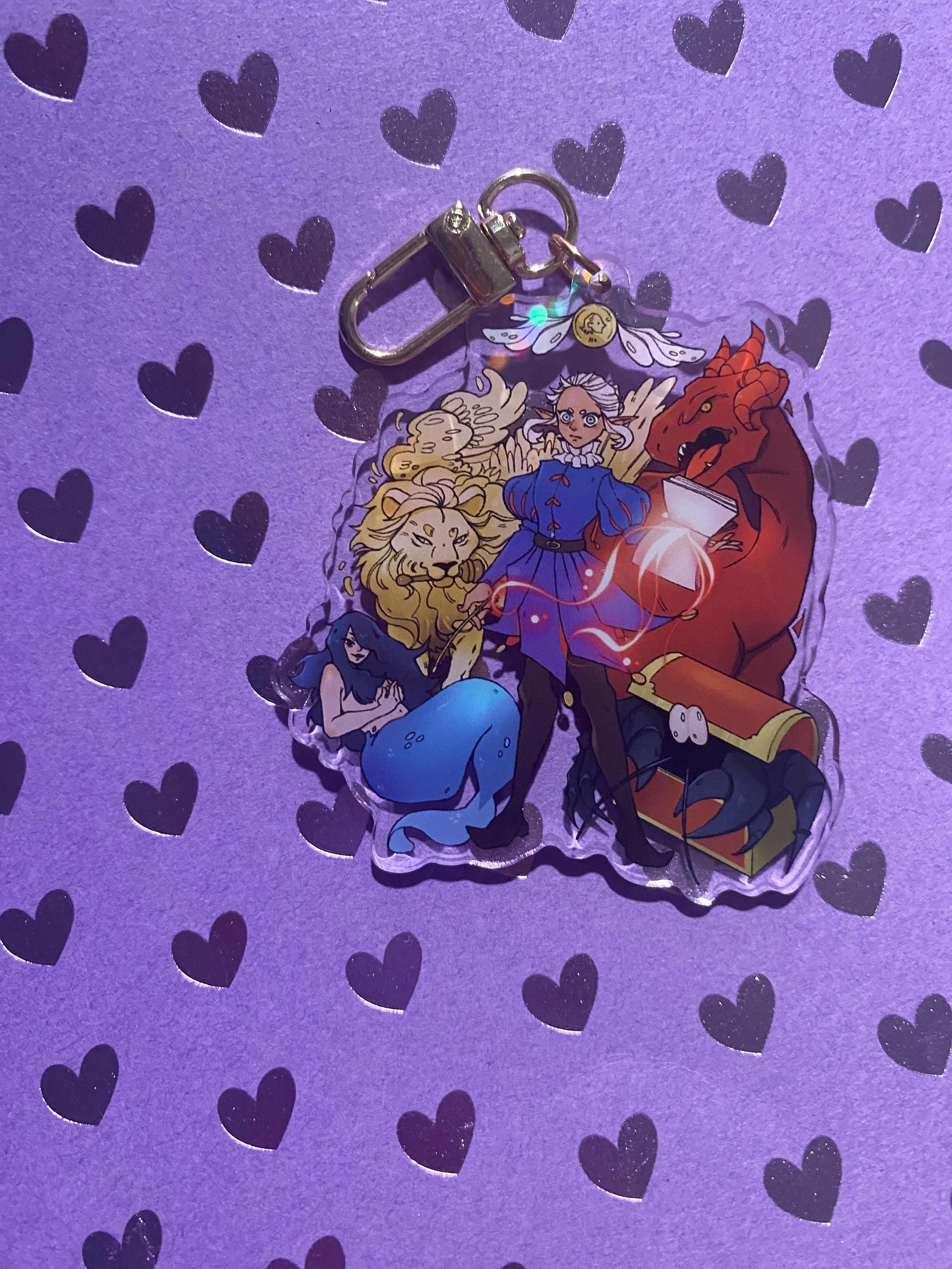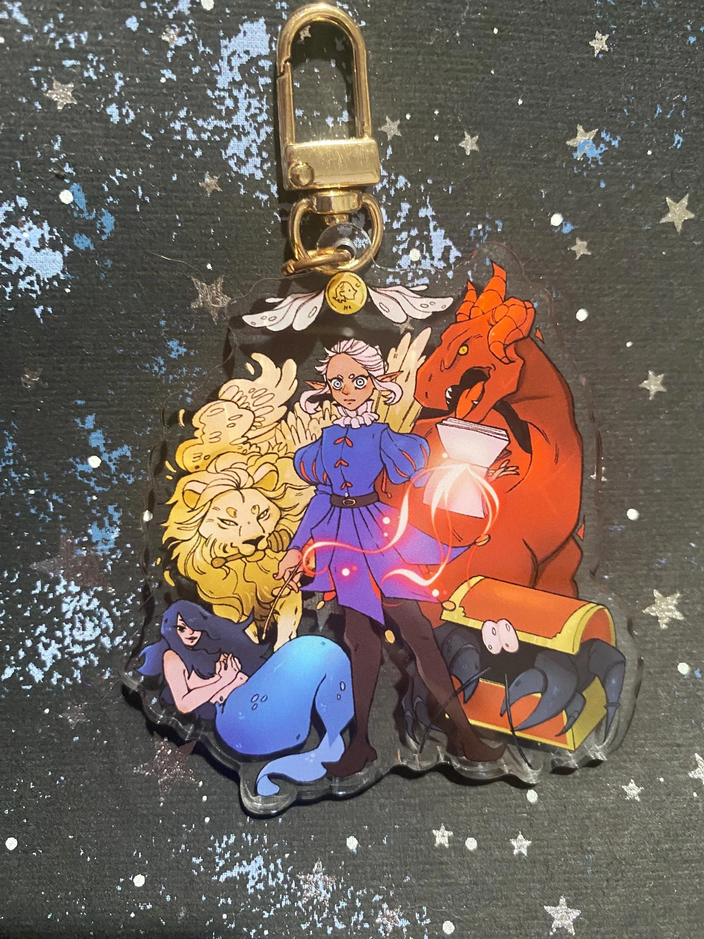 These keychains are waterproof so they’re good for notebooks, water bottles, bullet journals, scrapbooking, phones, folders, and laptops! Art collab by katiebblyne and AstroManatee