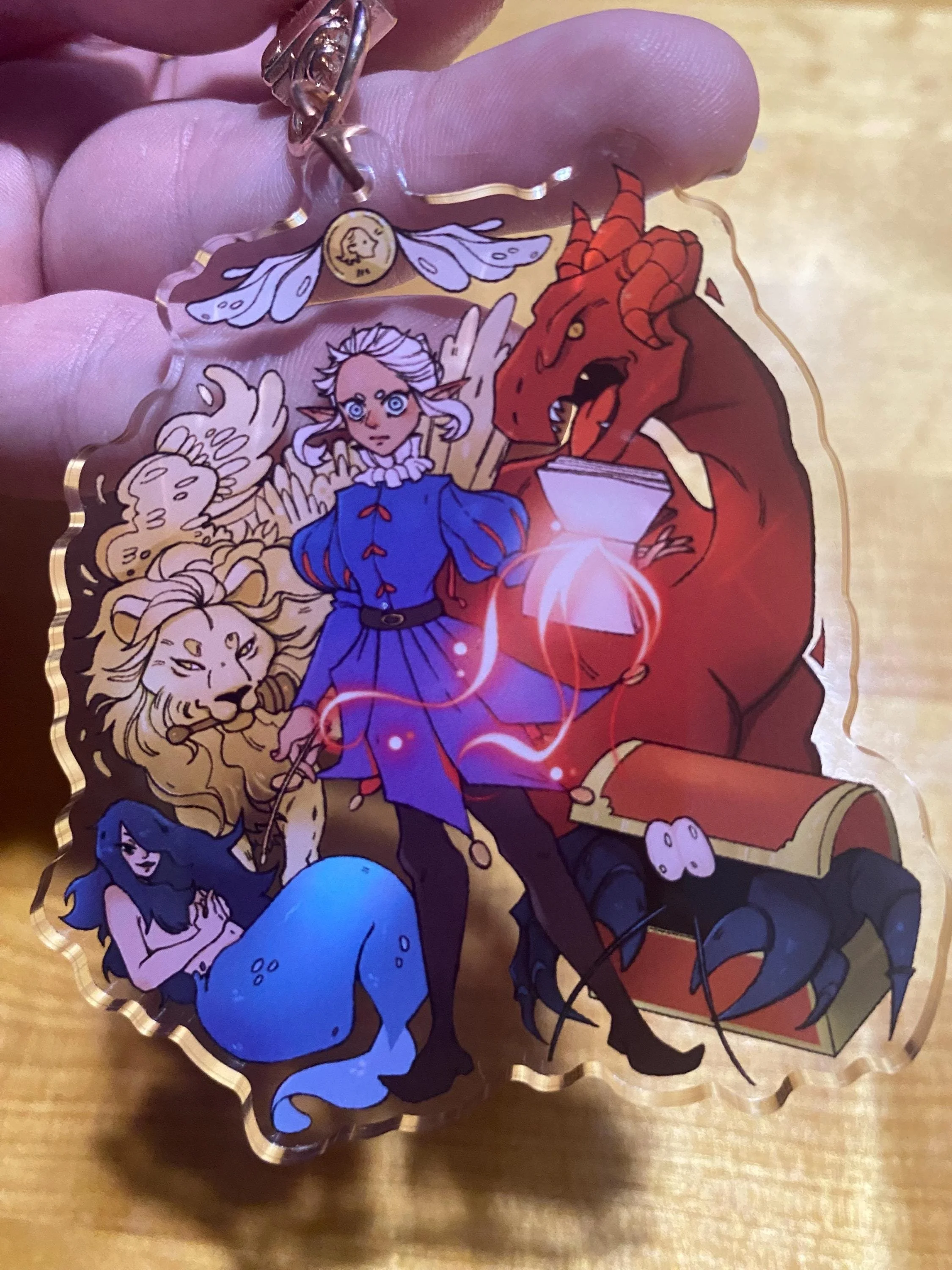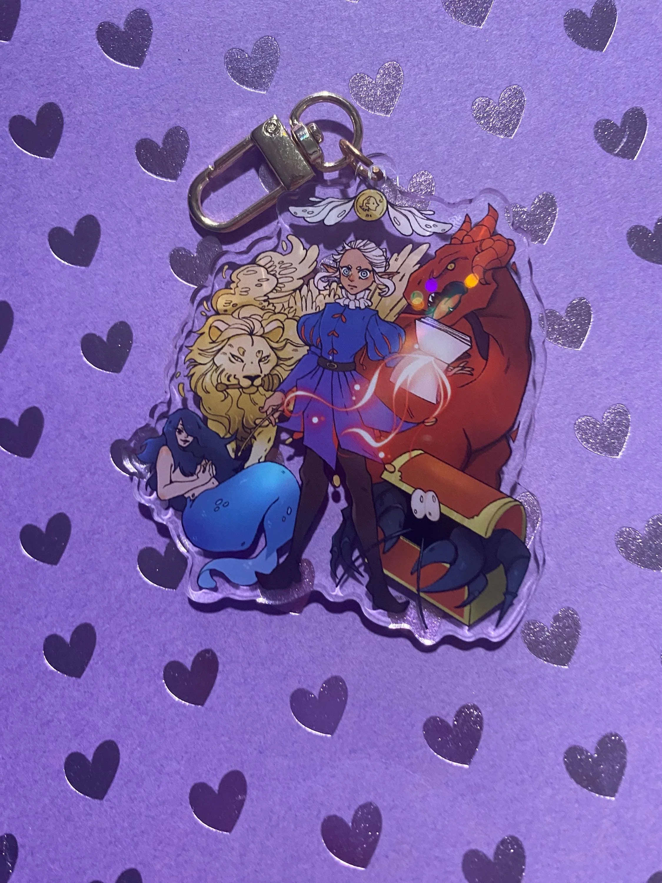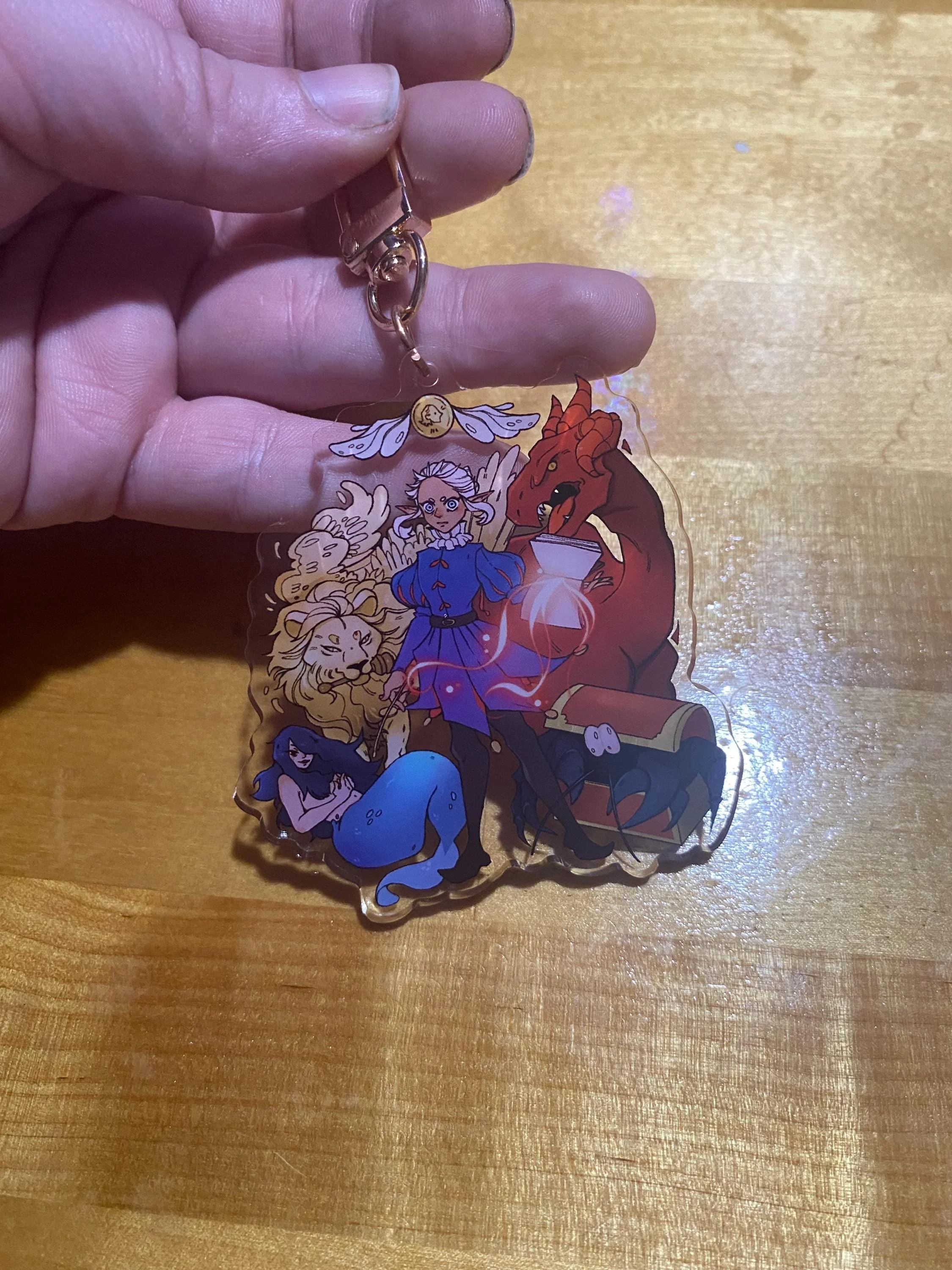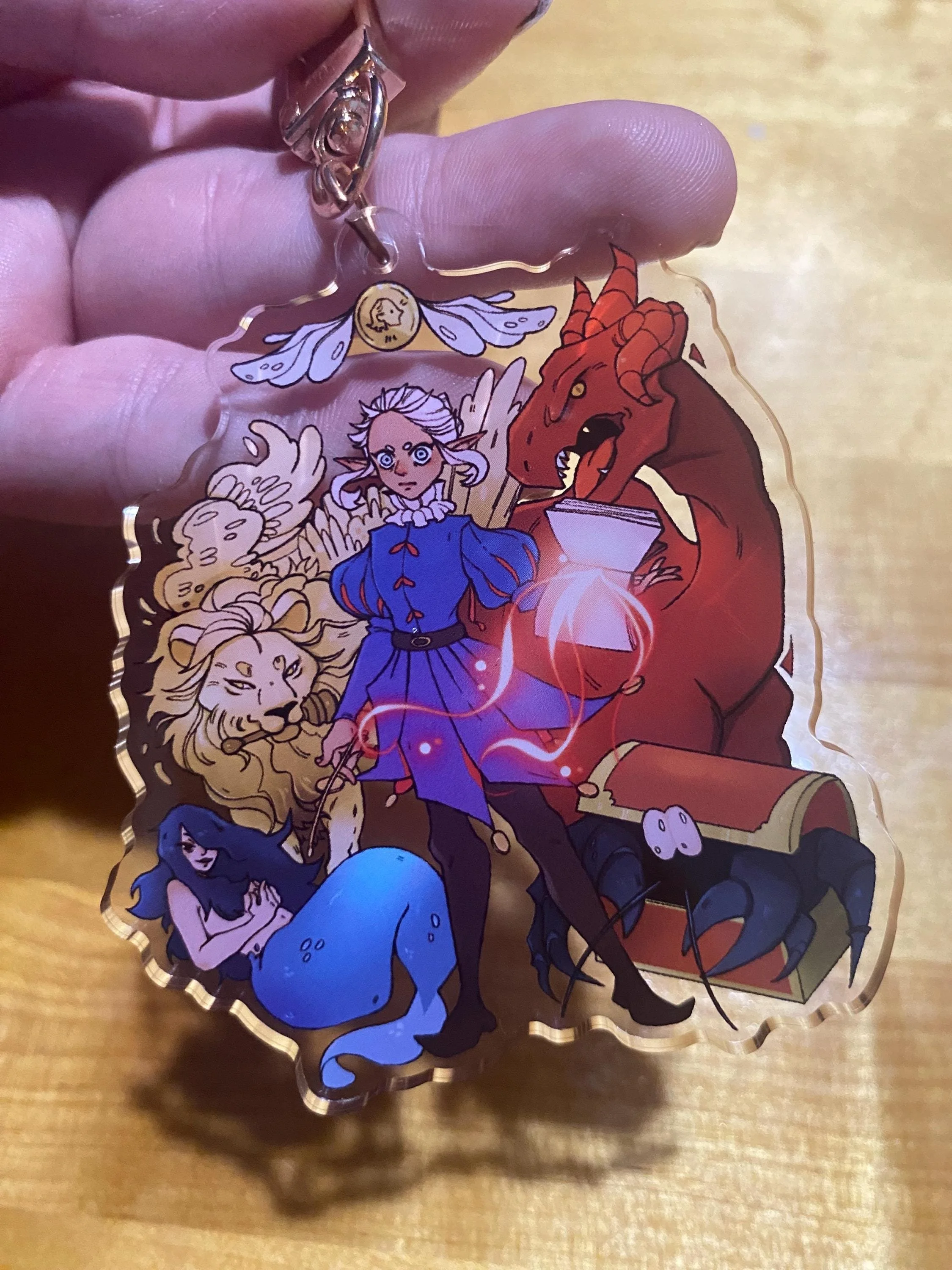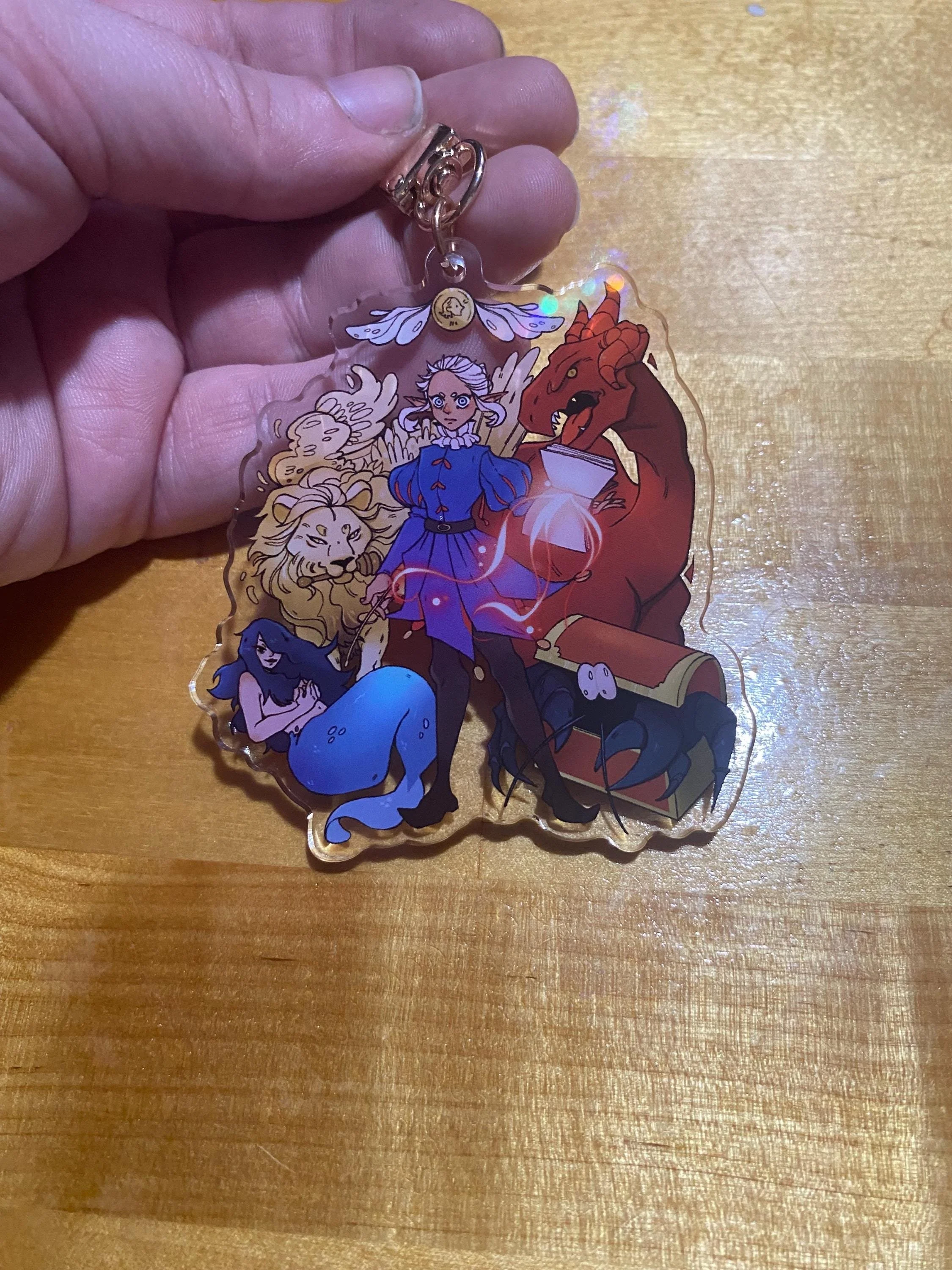 These keychains are waterproof so they’re good for notebooks, water bottles, bullet journals, scrapbooking, phones, folders, and laptops! Art collab by katiebblyne and AstroManatee